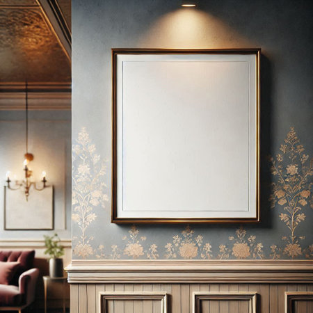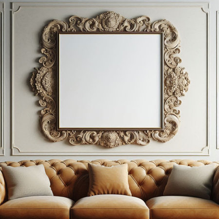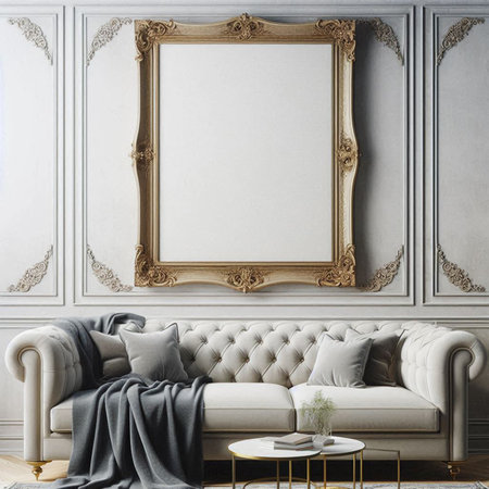 Classic interior with empty frame on wall. Mock up, 3D Rendering