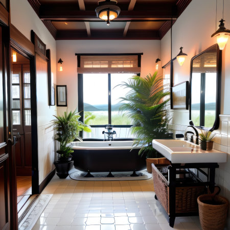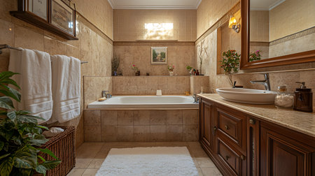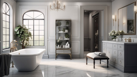 A transitional-style bathroom with a blend of modern and traditional elements for a timeless look. Generative AI