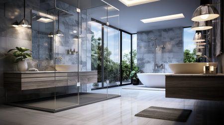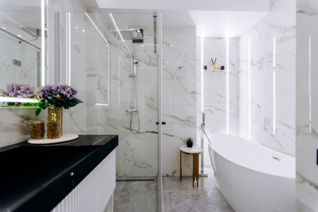 Interior Design of a spacious Modern Luxury Bathroom.
