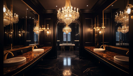 Luxury bathroom with marble sink and chandelier generated by artificial intelligence