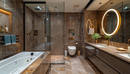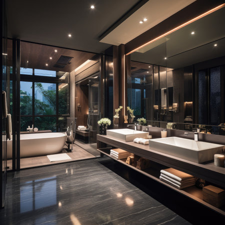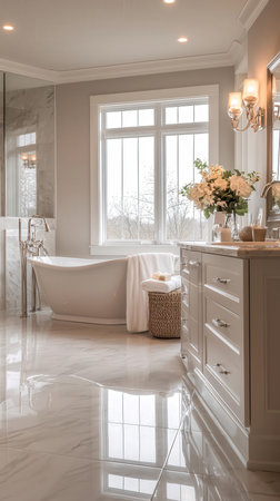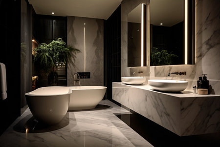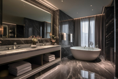 Contemporary Bathroom Interior Design with Marble Flooring Generative AI
