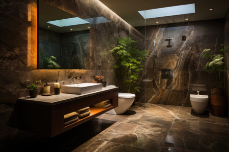 Comfortable domestic bathroom with elegant marble flooring and modern design generated by artificial intelligence