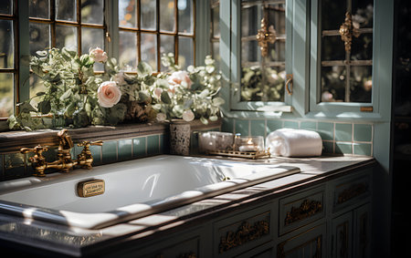 Interior Design of Elegant Bathroom, Luxury bathtub, Romantic Atmosphere, AI Generative