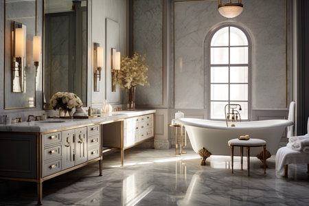 Bright elegant bathroom interior in a luxury house