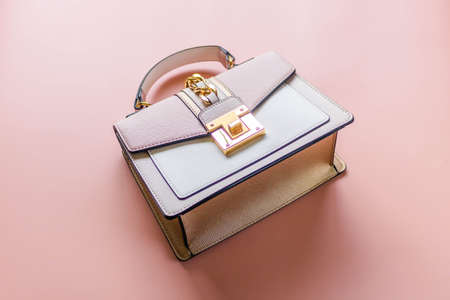 Luxury pink tone handbag on a light pink background.