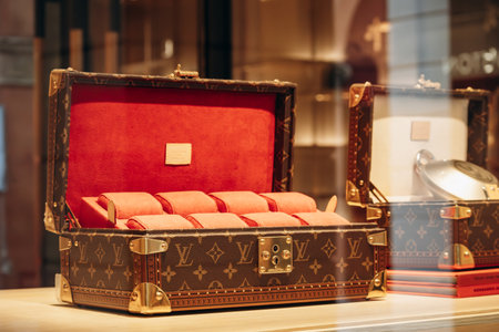 Bologna, Italy - October 6, 2024: Louis Vuitton jewelry chest in a boutique window