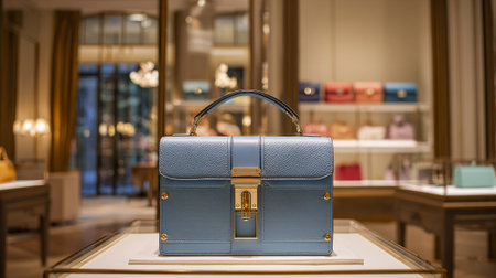 Stylish Handbag on Display: A Luxury Blue Leather Purse Showcased in Boutique