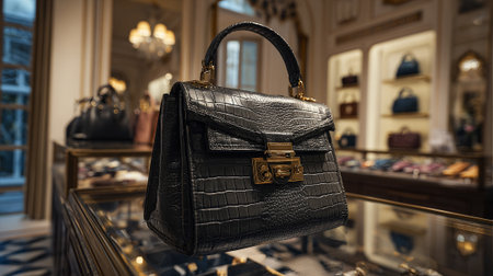 Luxurious Black Leather Handbag Displayed Elegantly in a Designer Boutique