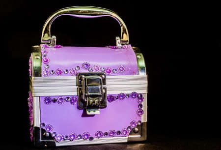 black leather clutch with diamonds on a beautiful background.