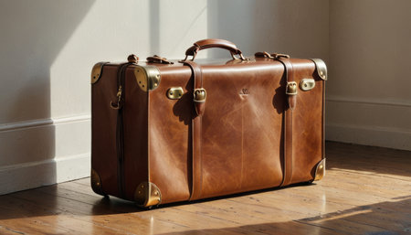 Vintage Leather Suitcase in Sunlit Room