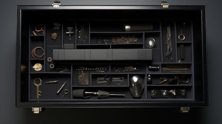 glossy open black box top view