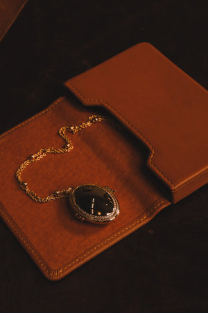 Wedding rings in a jewelry box on the bed in the bedroom