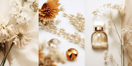 Copy collage nature space vintage flower art romantic perfume set bouquet
