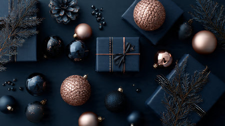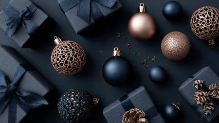 Carefully arranged ornaments showcasing a luxurious festive mood.