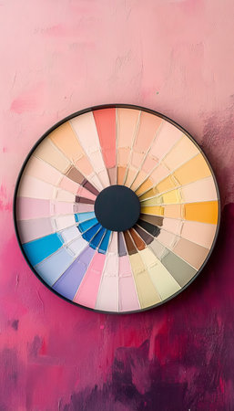 Pastel Color Harmony A Beautiful Color Wheel Displaying Tints and Shades on Warm Pink Background