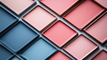 Soft shades of pink, peach, and blue cosmetics elegantly display creativity and beauty.