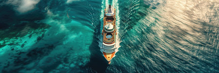 Aerial view of a luxury cruise ship sailing across the blue ocean waters AI