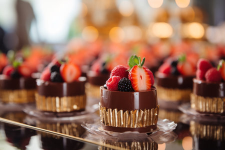 Dessert arrangement with these delightful chocolate cranberry mini cakes, a perfect centerpiece for holiday celebrations. Generative AI