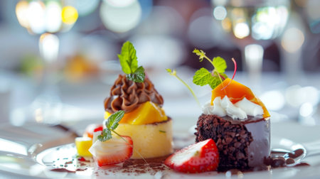 Delicious dessert options including decadent chocolate and tropical fruit dishes adding a touch of sweetness to the dinner