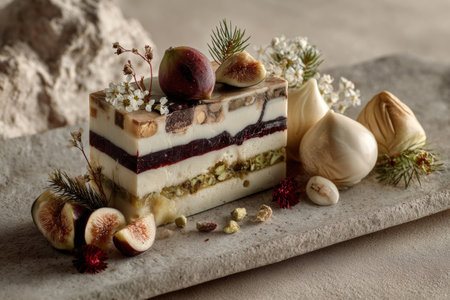 fruity and nutty white chocolate fudge with figs and candied chestnuts .Generative AI