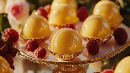A stunning array of elegant lemon desserts adorned with fresh raspberries, perfect for any celebration or special event. Indulge in this vibrant treat.