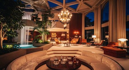 Luxury hotel lobby interior with a lot of furniture and lighting