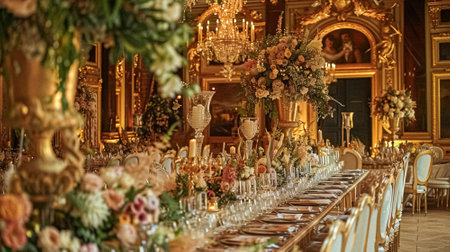 Elegant dining room with floral centerpiece and candles in luxurious setting. That the image is generated using AI