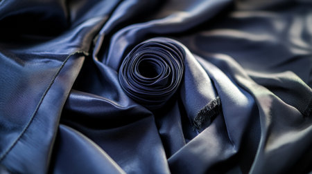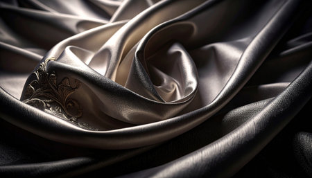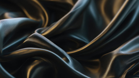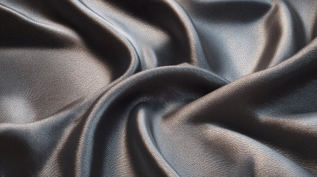 A close-up view of dark satin fabric showcasing its luxurious texture and elegant folds. Ideal for fashion, design backgrounds, and artistic projects emphasizing softness.