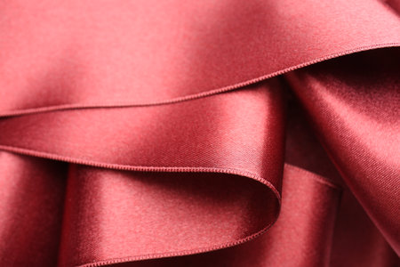 Red smooth satin or silk texture background. Red fabric abstract texture. Luxury satin cloth. Silky and wavy folds of silk texture. Rippled satin cloth. Premium silk fabric texture. Generative AI.