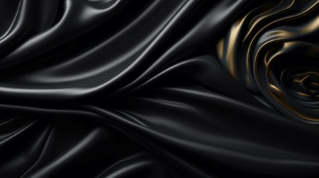 This image showcases luxurious deep black satin fabric featuring elegant folds and a plush texture. Ideal for fashion design, textile projects, and elegant backdrops.