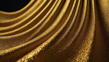 This image captures the beauty of golden fabric with a smooth texture, elegantly draped and illuminated, perfect for fashion and design projects.