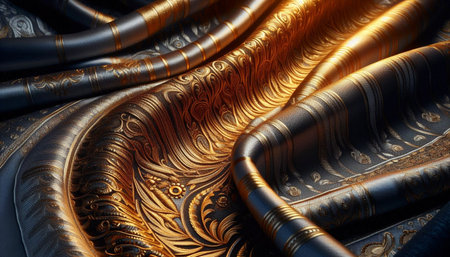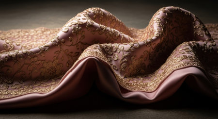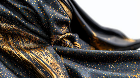 Miserable extravagance cloth, silk reflexive silk velvet, with make shapes, gold strings. Creative resource, AI Generated