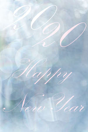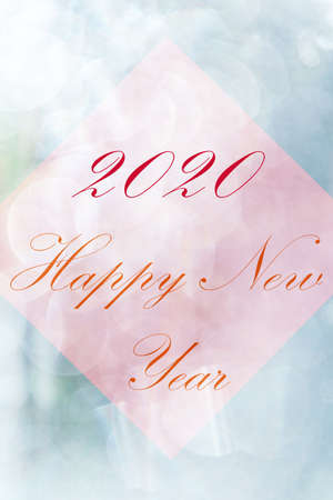 Happy New Year 2020 banner with soft colors and graphic elements. Glowing backdrop, space for text