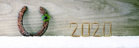 2020 New Year luxury design concept. Golden 2020 New Year horizontal template with golden glitter isolated on white backgound