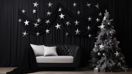 room christmas black gold illustration decorated scheme, throw blanket, sofa accents room christmas black gold