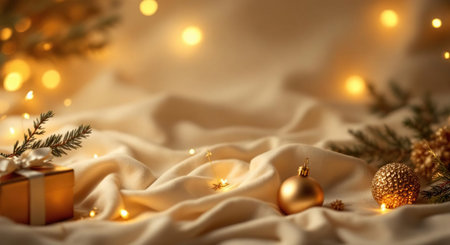 Elegant Christmas background with soft tones and generous copy space.