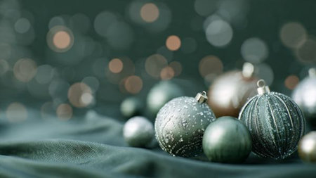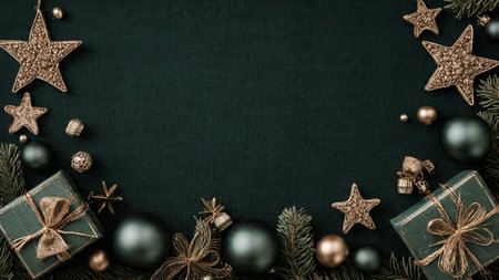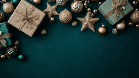 Elegant Christmas composition using deep-green shadows and warm golden reflections.