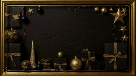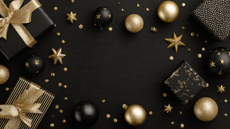 ornaments black and gold christmas background