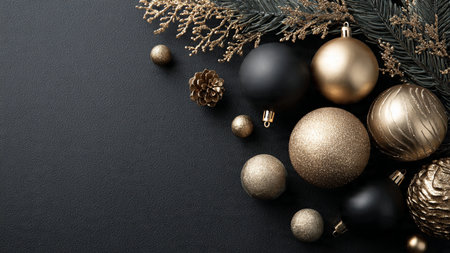 A perfectly balanced holiday display combining dark matte textures with glowing gold details.
