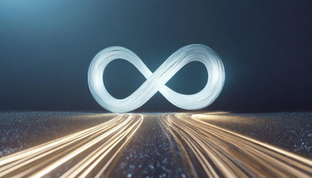 Illustration of a white infinity symbol on a dark background with a blue glow