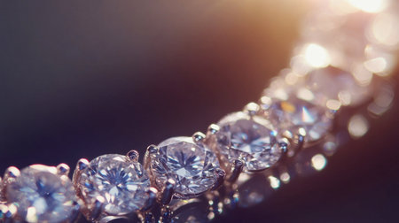 A close-up of a diamond tennis necklace glittering under soft studio lighting.