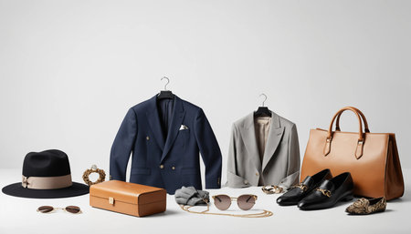 Fashionable men's clothing and accessories on a white background. ai generated.“This image was created using generative artificial intelligence tools