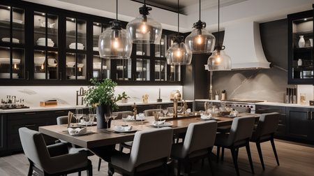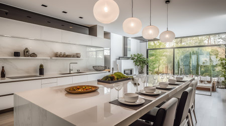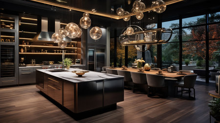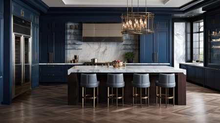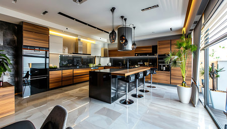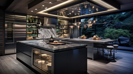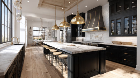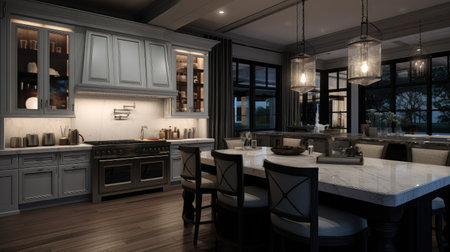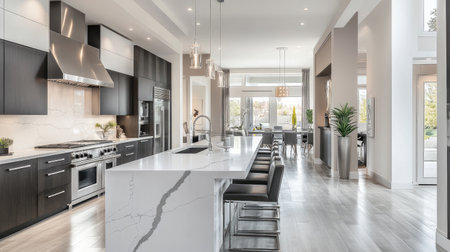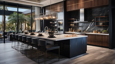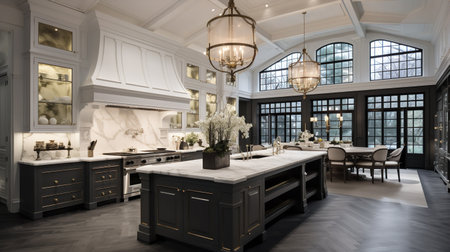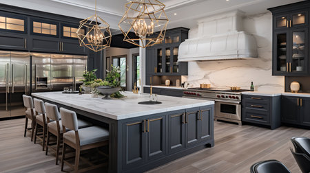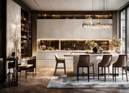 Elegant modern kitchen design home interior photography luxurious environment wide view