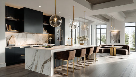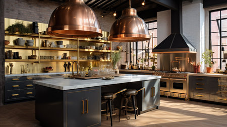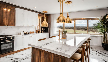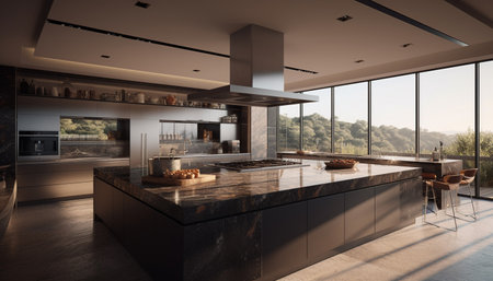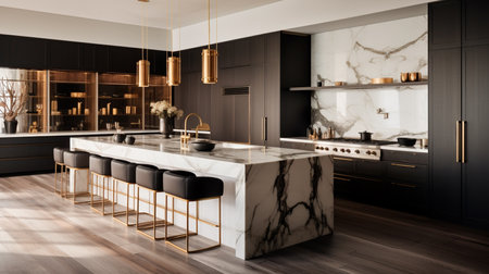 Modern luxury kitchen with elegant marble island generated by artificial intelligence