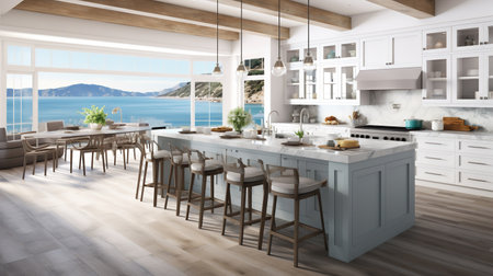 Breezy Coastal Kitchen with Stunning Sea Views - Beachfront Elegance