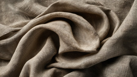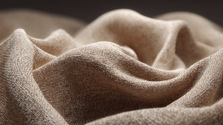 A captivating close-up image of textured fabric showcasing gentle drapes in natural earth tones, ideal for backgrounds, fashion design, and artistic projects.