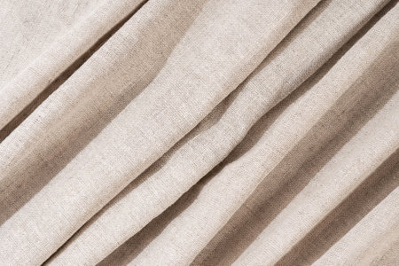 Elegant gentle beige linen textile folds create soft waves in a refined organic style backdrop.