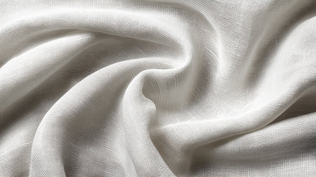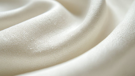 Soft, textured white fabric drapes elegantly, showcasing its delicate weave and subtle sheen. gentle folds create serene and calming atmosphere, perfect for various design applications