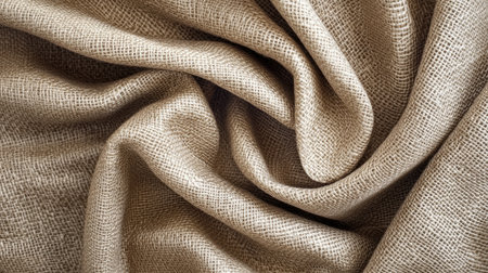 AI Generated. Textured burlap fabric showing elegant folds and soft draping