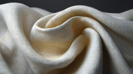 Captivating close-up view of soft, natural fabric in a warm cream hue, showcasing intricate texture and gentle folds, perfect for design inspiration and projects.